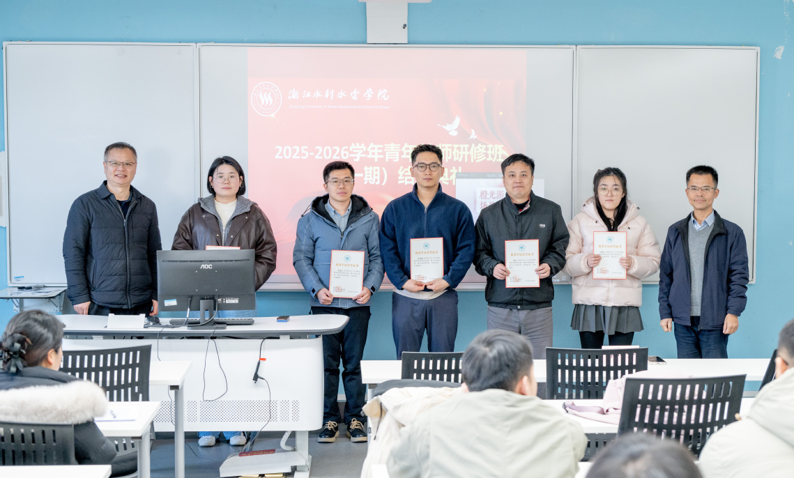 为系统总结研修成果,表彰先进典型,进一步加强青年教师队伍建设,2025年12月26日下午,浙江水利水电学院在钱塘校区教D楼204室举行2025–2026学年新进教师暨青年教师研修班(第一期)结业典礼。学校领导、教师教学发展中心相关负责人、优秀青年教师代表以及本期研修班全体学员参加了本次活动。